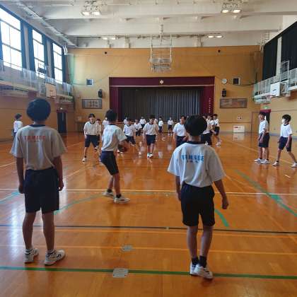 2年生の体育では、授業の終わりの方に、ドッヂボールを行いました。