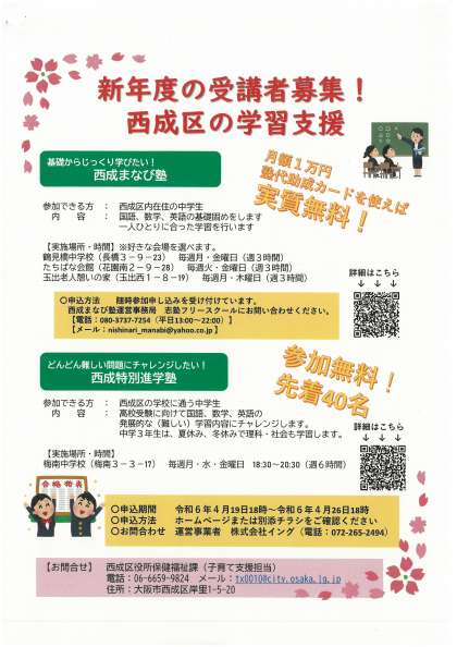 それぞれの塾の申込先は、本日配布のチラシにも書いていますので、そちらへ電話を掛けてください。