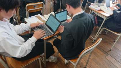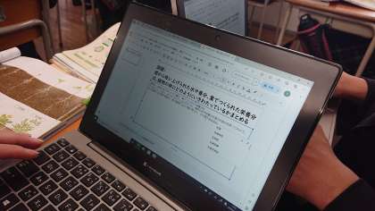 2年生は、植物がどのように水分や栄養を自分の体全体にいきわたらせるのかというテーマについて、教科書やPCを使って調べ、まとめる作業をしました。
