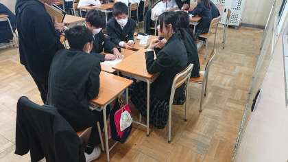 1年生は、一泊移住でつくるカレーをどんなカレーにするか、班で話し合いをしました。