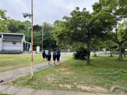 地図を見ながらチェックポイントの先生を探して、ポイントを集めています。