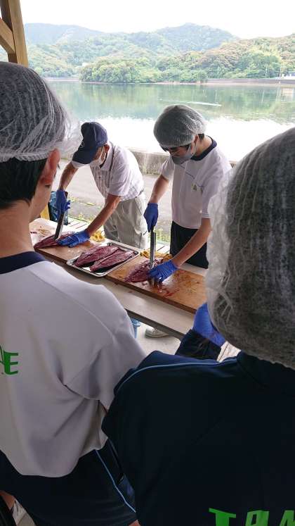 レクチャーを受けながら、おっかなびっくり、さばいています。