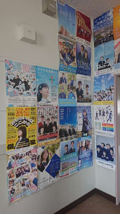 3年生に向けて、高校から送られてくるポスターを貼っています。