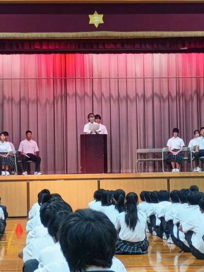 昨日、生徒会執行部の役員に立候補した人たちの立会演説会が行われました。