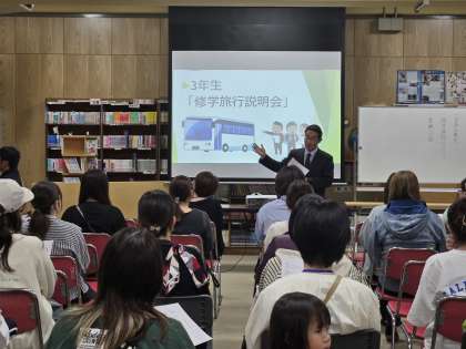 本日、3年生保護者対象の修学旅行説明会を行いました。お忙しい中、多くの保護者の皆様にご参加いただき、ありがとうございました。