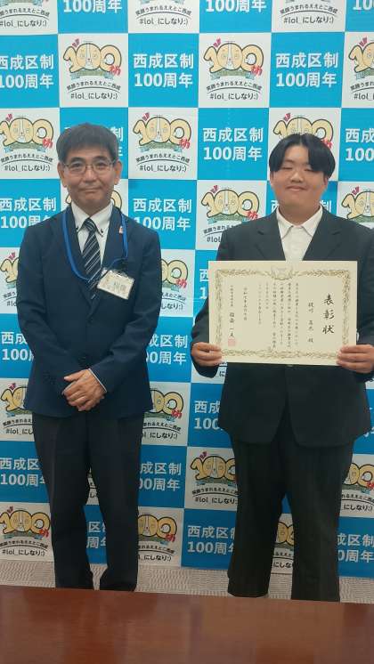 3月9日に実施された「第8回全国中学ビブリオバトル」で優勝した梶川くんが、昨日、稲嶺西成区長より、区長表彰を受けましたので、ご報告いたします。