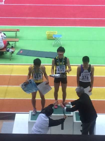 本校を前日に卒業した森田翔音くんが60mHに出場し、決勝で7秒92のタイムを出して、みごとに優勝しました。