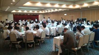 徳島グランドホテル・偕楽園で昼食のカレーを食べ、13時25分、玉出中学校に向けてバスは出発しました。