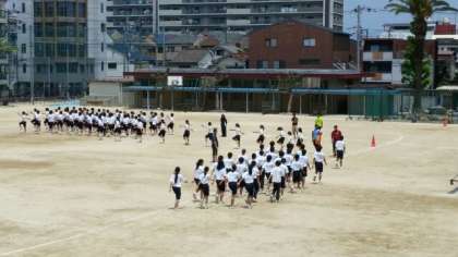 みんなで声を掛け、腕の振り、足並みがそろうように、各クラスとも体育委員を中心に頑張っていました。