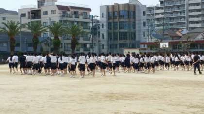6月6日(月)、2年生は3・4時間目、3年生は5・6時間目に体育大会に向けての学年練習に取り組みました。