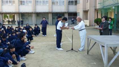 その後表彰式を行い、男子には「なごみ会」副会長の宮地様から、女子には「なごみ会」会計の宮武様から表彰状が授与されました。
