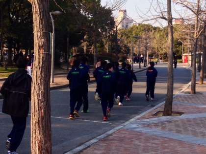 来週、長居公園外周コースで行われる大阪市中学校駅伝大会に向けて、本校陸上部が長居公園にて試走しました。当日多くの中学校も長居公園で練習しており、よい刺激を受けました。