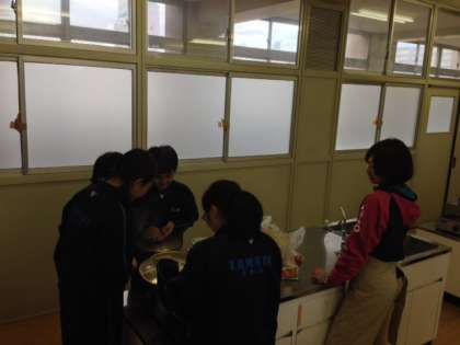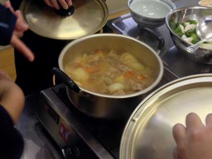今日は料理会で、調理室でタットリタンという鶏肉のお鍋を作りました。
