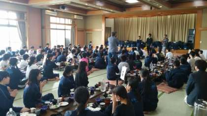 すべて予定通り進んでいます。昨日は曇り空でバス移動の時と旅館に到着した時に雨に降られましたが、活動しやすい一日になりました。今朝は雨もあがり、好天に恵まれた一日になりそうです。