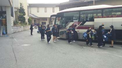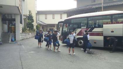 朝食を終え、退館式では小原君からお世話になった旅館の方々にお礼の挨拶をしました。荷物をバスに積み込みラフティングへ出発です。