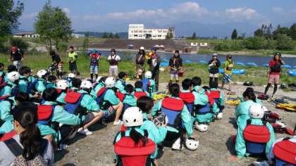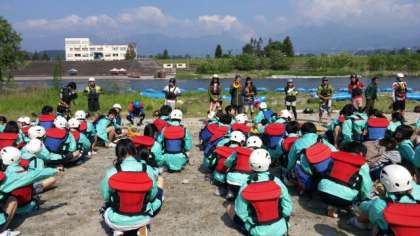 アルプスぼうけん組楽部のインストラクターの皆さんの指導のもと、開校式を行いました。