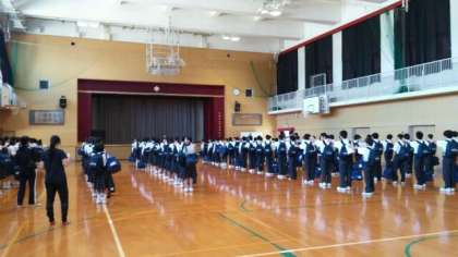 1年生は、29日(月)朝、8時30分に集合完了です。いつもの登校時間と同じですが、少し余裕を持って登校してください。