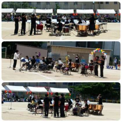お昼の休憩前、今年度も吹奏楽部の演奏を披露させていただきました。