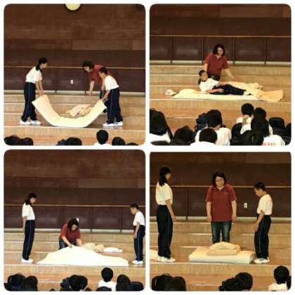 生徒代表の挨拶、施設からの挨拶の後、施設の利用の仕方や就寝時のシーツの使用の仕方について説明がありました。