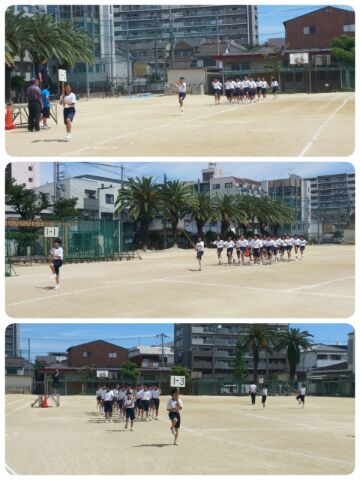 自分の出場する種目の確認、学年書目の練習、2時間目は行進練習に取り組みました。練習を重ねるたびに、腕の振りが大きくなり、ひざも高く上がるようになってきました。金曜日の本番が楽しみです。