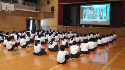 6月17日(土)、体育館において、1年生は1時間目、2年生は2時間目に平和学習に取り組みました。