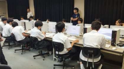 都島工業高等学校の建築科の授業です。パソコン教室で建築物を3Dで構想する3DCGの授業を体験しました。