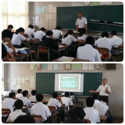 出前授業に続き、6時間目は高等学校4校(住吉商業高等学校・今宮工科高等学校・都島工業高等学校・南高等学校)の先生方から、学校の特色や高校生活について、また、卒業後の進路などについても詳しく教えていただきました。