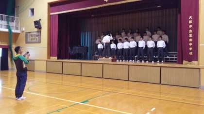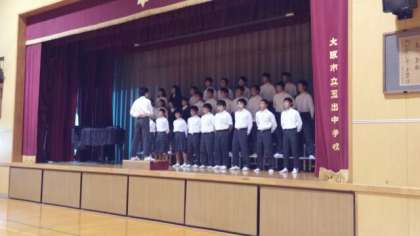 10月6日(金)6時間目、3年生は音楽発表会に向けて、クラスごとに体育館で合唱の練習に取り組みました。