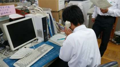 事前学習した電話での話し方・マナーをしっかりと意識し、職員室から各事業所の方へお願いの電話をさせていただきました。