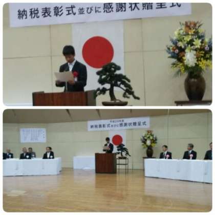 11月9日(木)午後3時30分より、大阪フィルハーモニー会館において、西成税務署・公益社団法人西成納税協会・西成納税貯蓄組合連合会、三者主催の「納税表彰式並びに感謝状贈呈式」が開催され、本校3年の森山孝和君の「税についての作文」が近畿納税貯蓄組合総連合会会長賞」に選ばれ、表彰状を授与されるとともに、式の中で作文を披露しました。