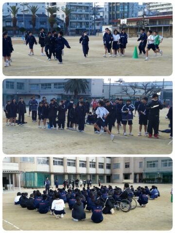 最後のランナーが運動場に入ってくると、多くの生徒がトラックの内側に走り寄り、大声援を送っていました。1年生のお互いを思いやる優しさが伝わる瞬間となり、寒い中でしたが心の中が熱くなってきました。