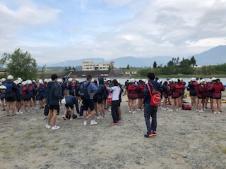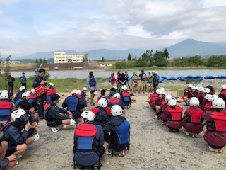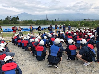 退館式を終え、いよいよラフティングです。熱心に説明を聞いています。