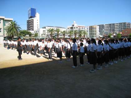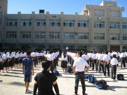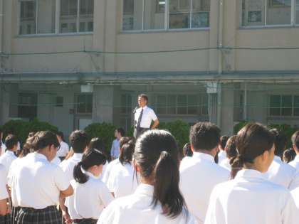 さて、先生は、朝礼台で毎週お話をします。
