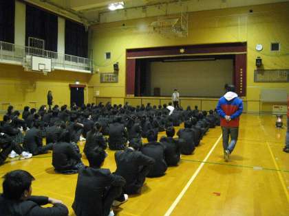 体育館や格技室に集まり