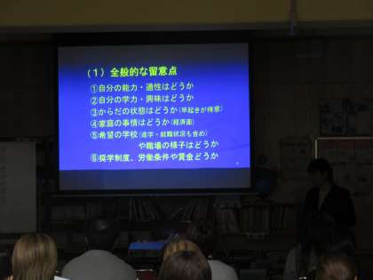 3年生の保護者を対象に第2回進路説明会を行いました。「進路の手引きNo.2」を配付し、進路指導主事より説明させていただきました。保護者の皆様には多数お越しいただきまして、ありがとうございました。来週行われる進路懇談につきましても、よろしくお願いいたします。