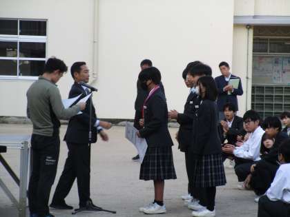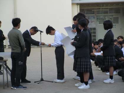 今日は久しぶりの全校集会でした。文化系、体育系の様々なコンクールや大会で、多くの生徒が表彰されました。