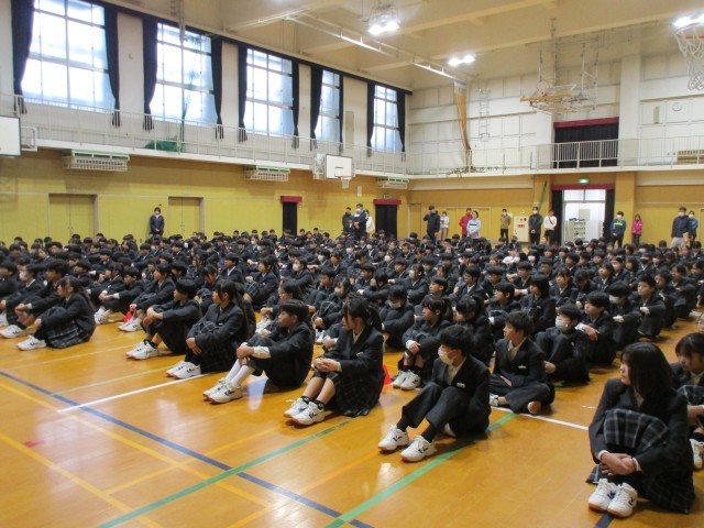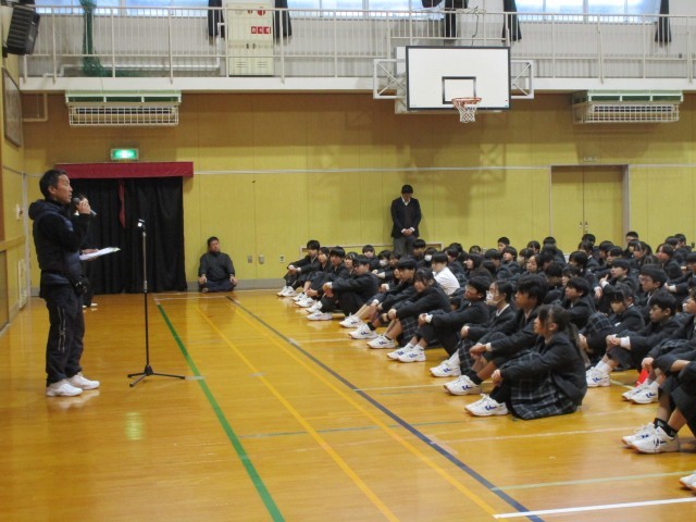 終業式では、校長先生からのお話と冬休みの生活についてのお話がありました。