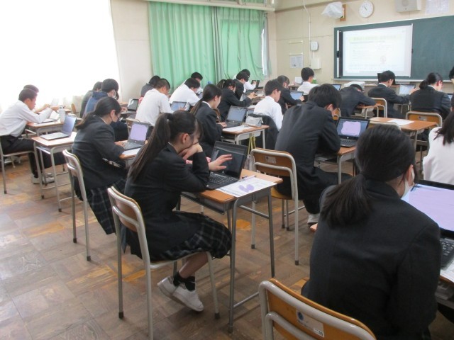 今年度は英語の調査もありますので、2日前に英語3技能(読む・書く・聞く)と生徒質問をCBTシステムによるオンライン方式で行いました。