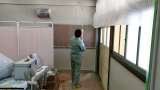 保健室の壁を塗り替えてくださっています。長期休業中にしかできない作業です。