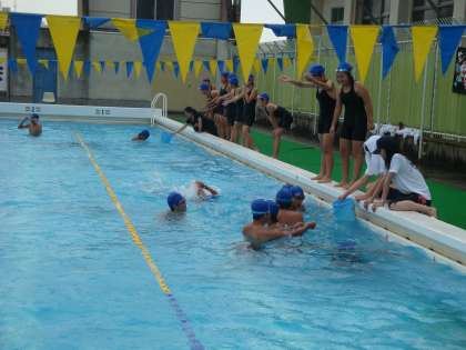 写真は、碁石拾いの様子です。担任の先生も必死です!