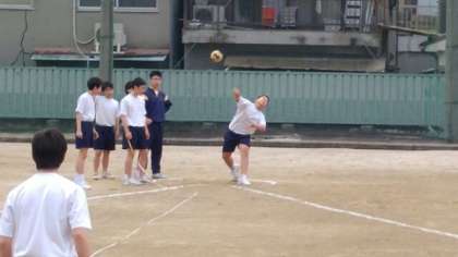 4月24日(水)、朝からの雨もやみ、4限にはグランドで2年生体育「ハンドボール投げ」の授業を実施しました。男女とも力投する姿が見られました。
