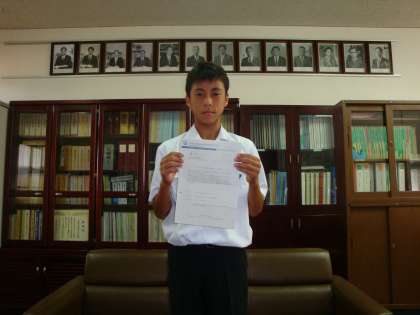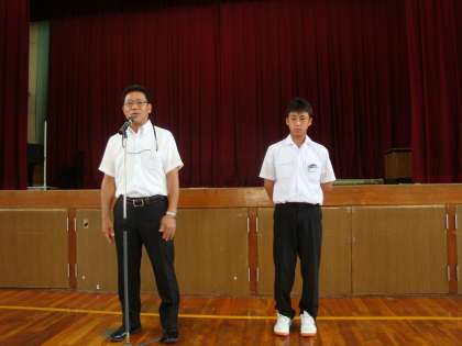 本校1年生の那須英寿くんが、セレッソ大阪U-13の選抜メンバーとして、明日9月9日から9月16日まで、スペインへ遠征に行きます。本日の全校集会で校長先生より紹介され、全校生徒からあたたかい拍手が送られました。右の写真は、校長室で選抜メンバーに選ばれた報告の様子です!「お土産ばなしを楽しみにしています!がんばって〜」