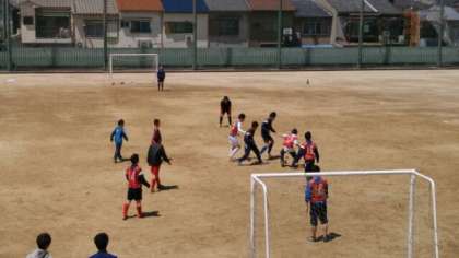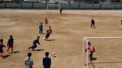 その後は、ミニゲームをしています。今日は、昨日より気温も下がり風もありますがみんな元気にグランドを駆け回っています。