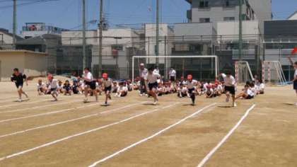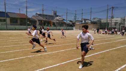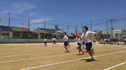 試走が終わり、いよいよ本番!中学生と小学生が交互にレーンに分かれて走ります。さすがに中学生男子が速いです。
