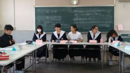 各学年、各委員会からの目標の報告のあと、体育大会スローガン、文化祭テーマ、文化祭スローガンを決定しました。
