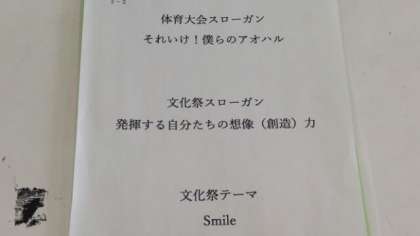 体育大会スローガンは、「それいけ!僕らのアオハル」