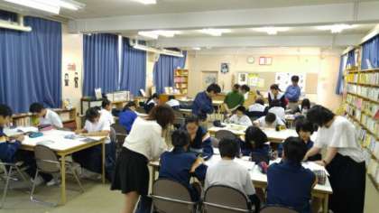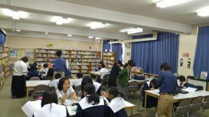 今日の参加生徒は、全校生徒のほぼ6分の1の21人!たくさん集まりました。本校教員も様子を見にやってきました。用意されたタブレット10台を活用し、課題に取り組んだり調べ学習をしたり、また、持参した課題に取り組んだりと積極的に学習する姿が見られました。
