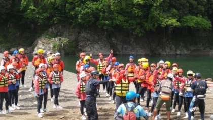 学級写真を撮り、各班ごとにインストラクターさんの紹介がありました。この時点で大盛り上がりです!