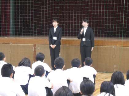 全校集会で、本日より教育インターンシップに来られる大学生の方の紹介がありました。毎週水曜日に来てくださいます。教科は体育ですが、他の授業でも学習サポートに入っていただきます。よろしくお願いいたします。