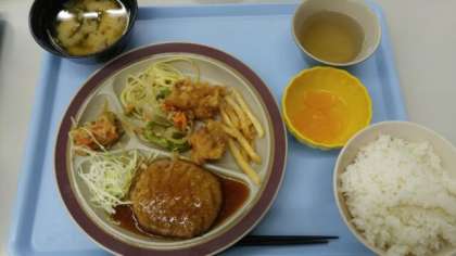 メニューは、おろしハンバーグと唐揚げです。